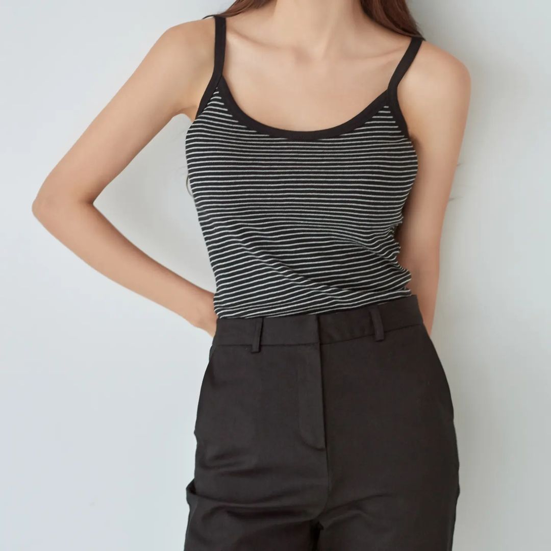 잔잔한 배색 스트라이프 패턴으로 한층 감성적인 무드를 선사해드리면서 캐주얼하게 또는 페미닌한 포인트로 다양한 코디를 완성할 수 있는 스트라이프 나시