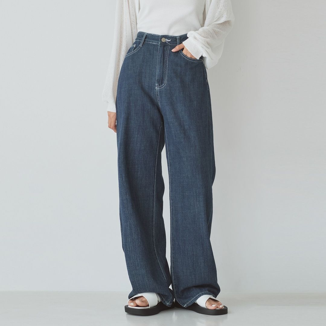 네이비 톤의 생지 진청 컬러에 화이트 스티치를 더해 유니크한 무드를 선사해드리며, 시원한 착용감과 멋스러운 디자인을 두루 갖춘 썸머 와이드 데님 팬츠
