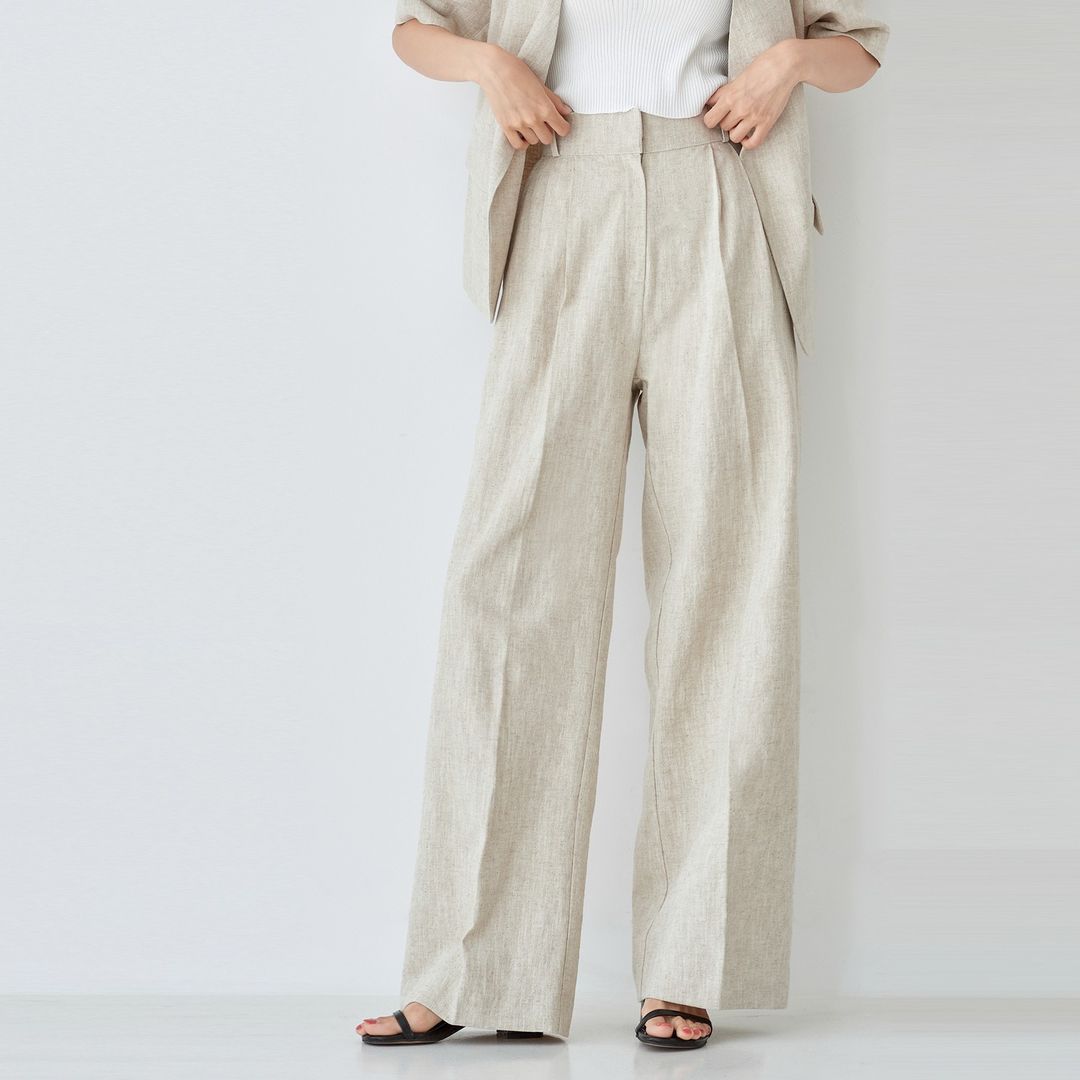 맥시한 기장감의 와이드 핏으로 전체적인 실루엣을 스타일리시하게 표현해드리며, 세련되고 내추럴한 린넨 특유의 텍스처가 돋보이는 리틀마켓 제작 롱 와이드 슬랙스
