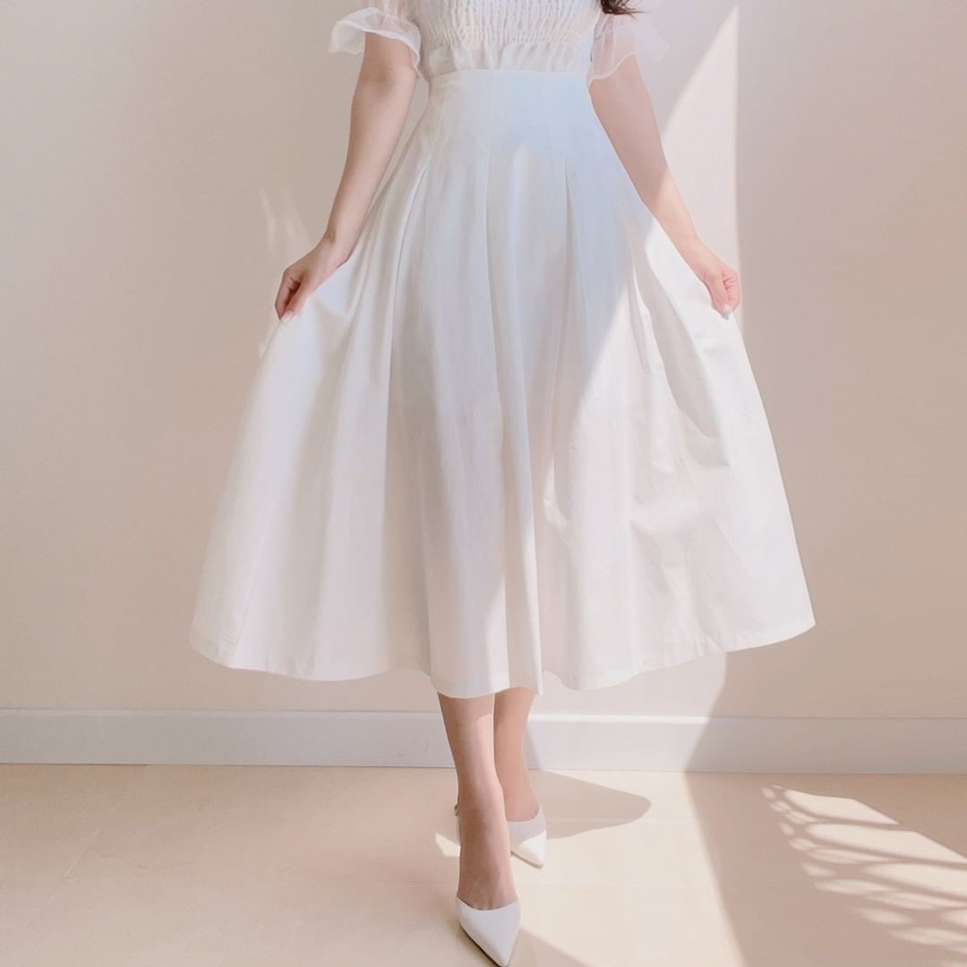 종아리 아래로 내려오는 롱 기장에 풍성함이 돋보이는 A라인의 핏으로 단아하고, 로맨틱한 무드를 선사하는 플리츠 스커트
