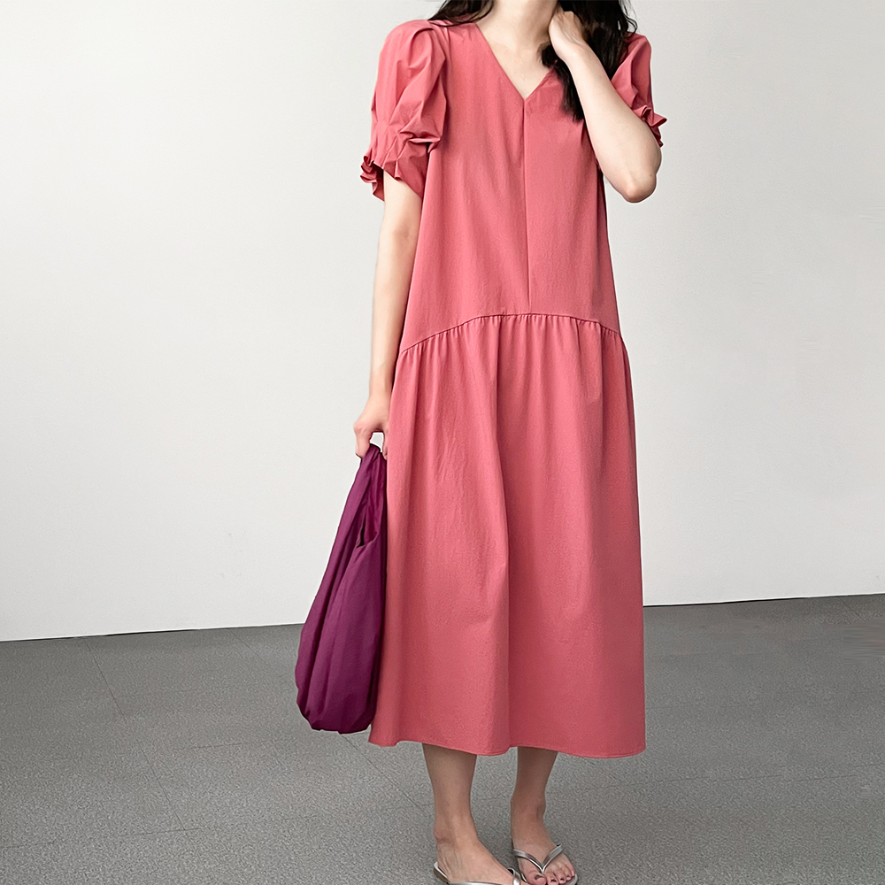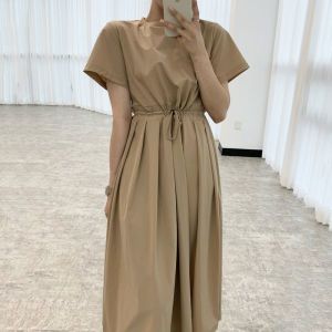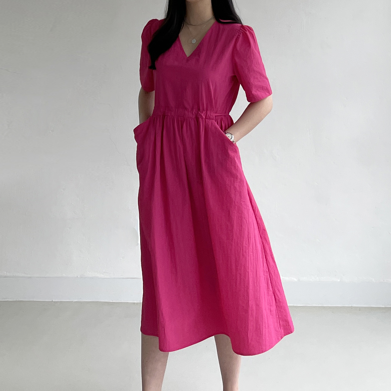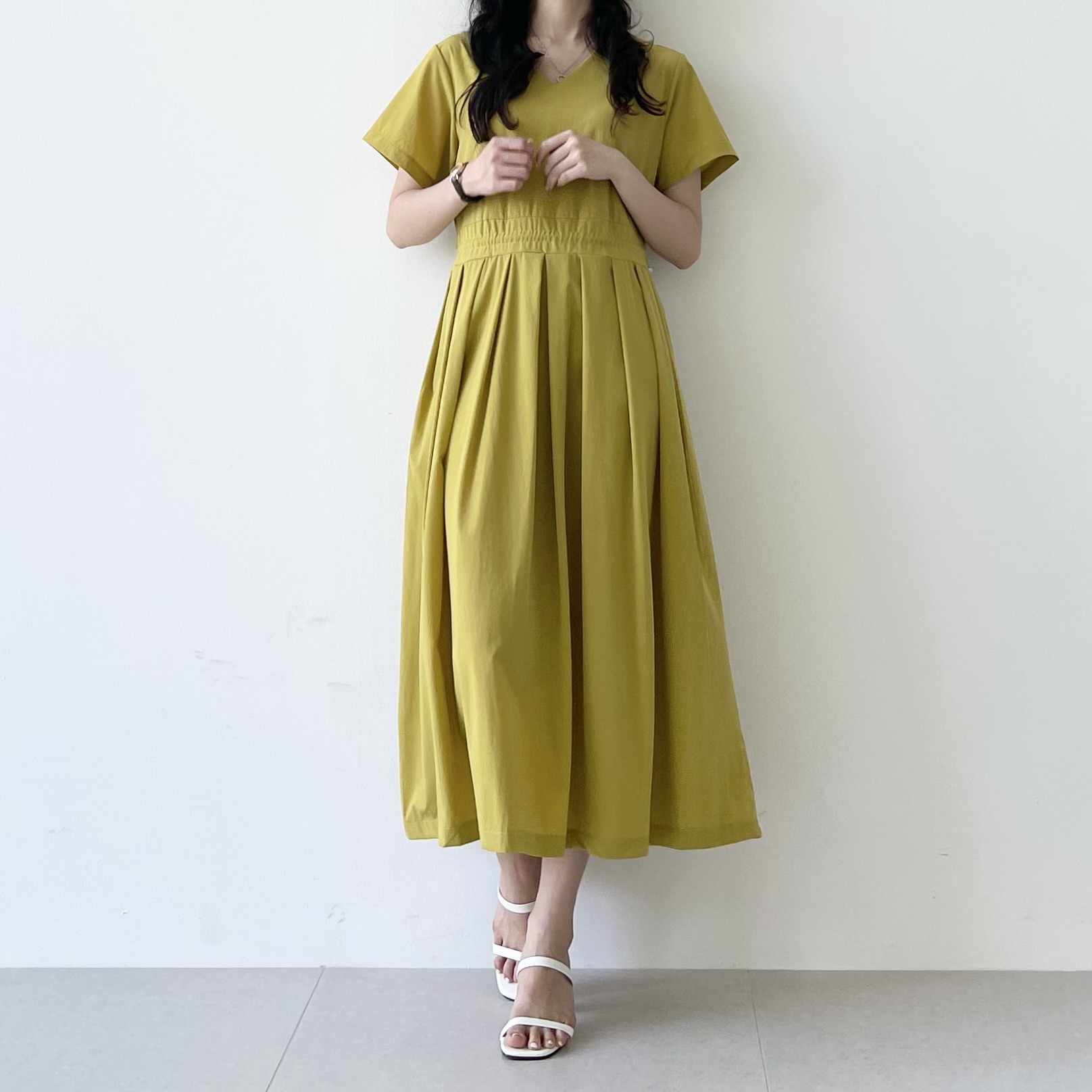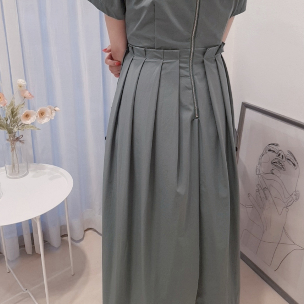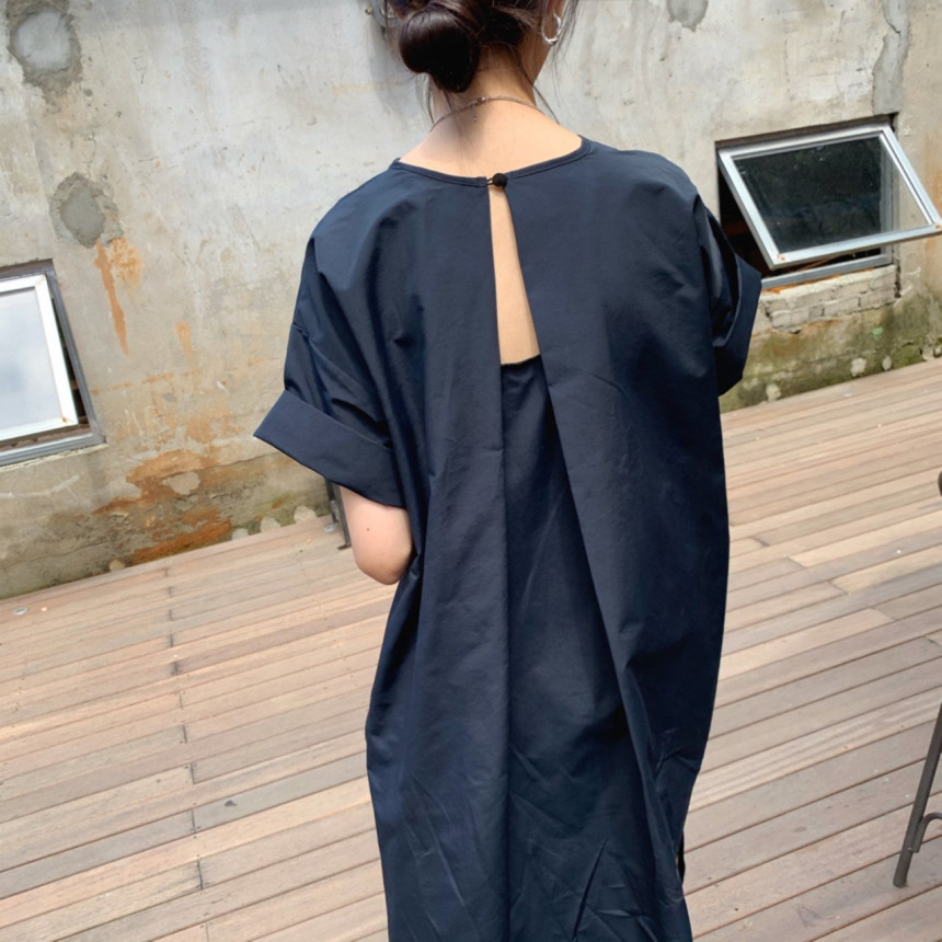 ✔️ 바스락 나일론 배색 집업 스트링 반팔 롱 원피스 (2color) 44반-99