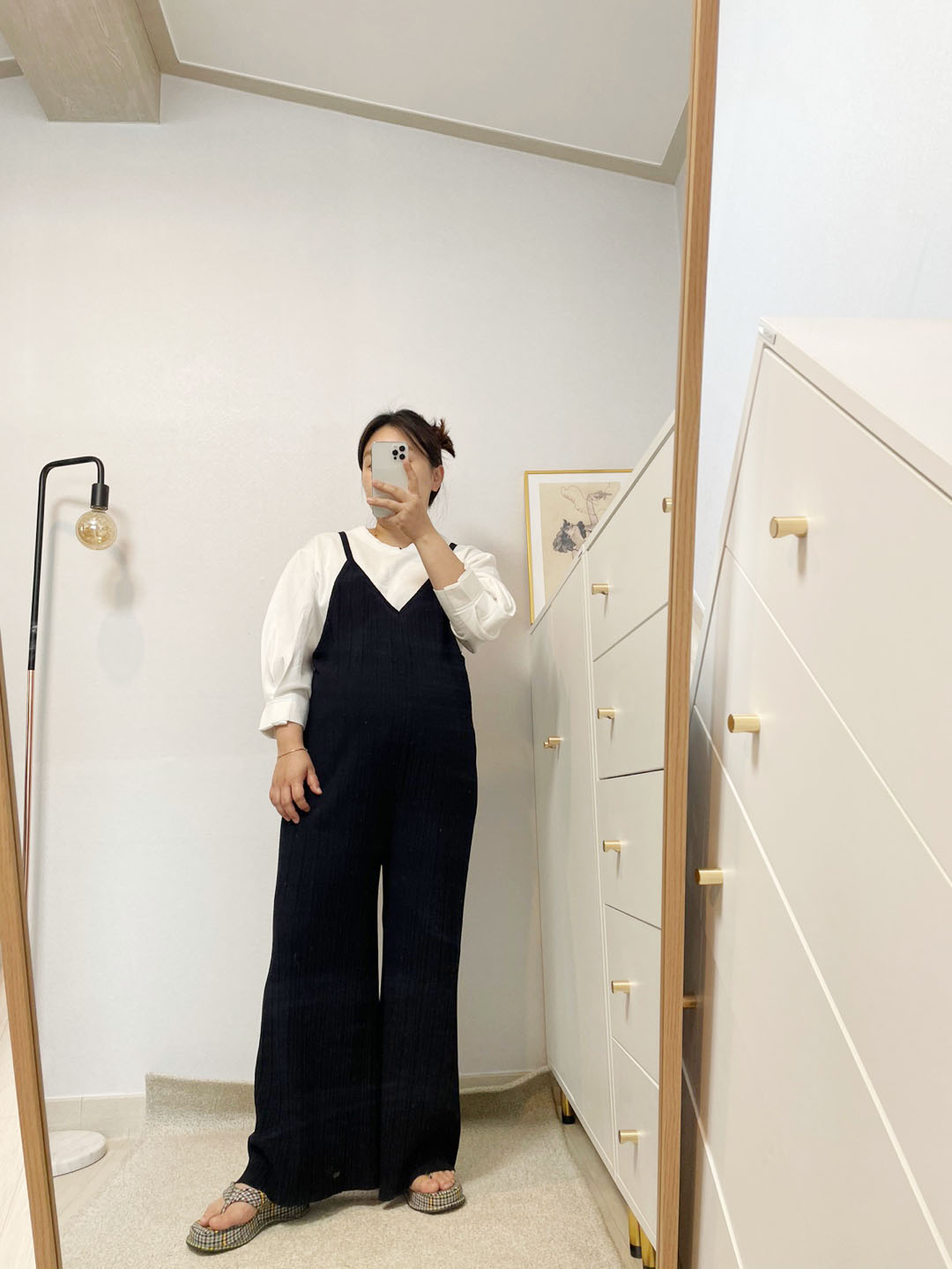 머리 대충 질끈 올려 묶고 편하기 입기 좋은 점프수트, 가을을 기다리며 간절기 상품으로 업뎃완료요