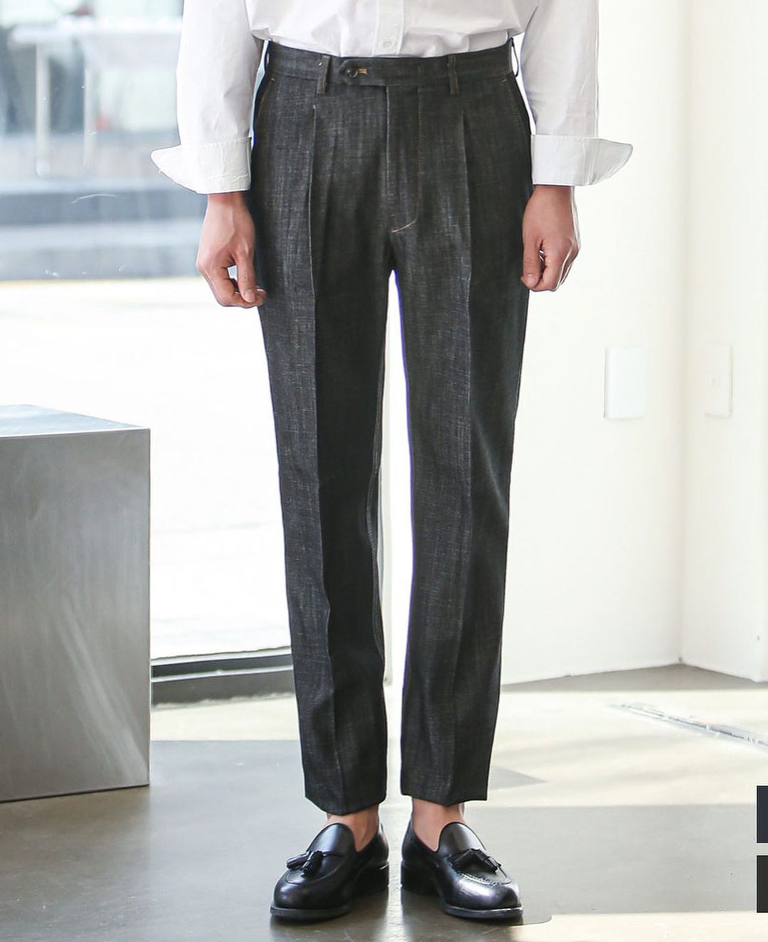 슬랍 데님 원단을 제작된 원 턱 데님 팬츠입니다.