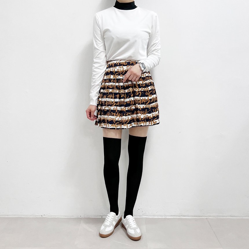 반목 폴라 디자인으로 세련된 스타일 연출이 가능하구요~ 배색 컬러가 유니크한 포인트가 되어주는 긴팔 폴라 티셔츠예용 🎈스커트 안에 넣어 입었을때 이쁘게 코디가 되었고 기장이 짧지 않아 밖으로 빠지거나 하지 않아 안정적으로 착용했어요 🤗