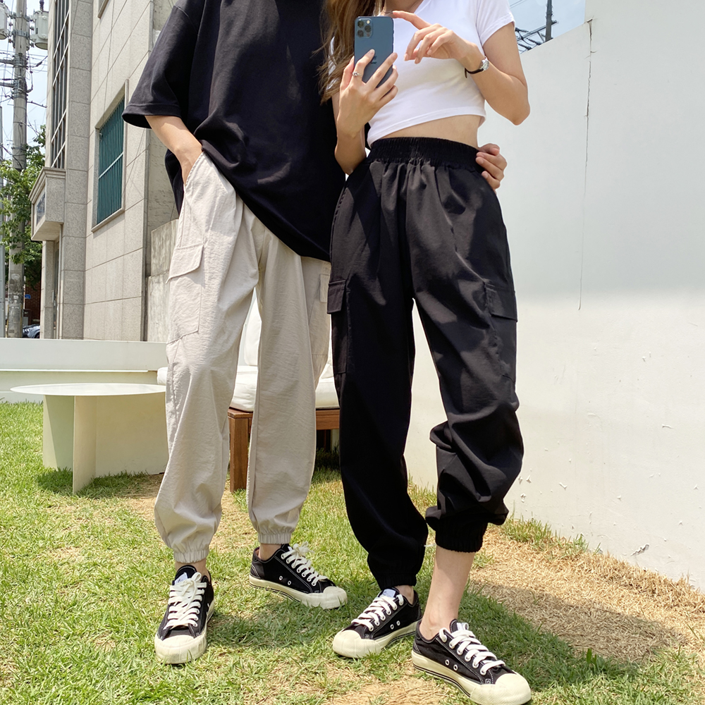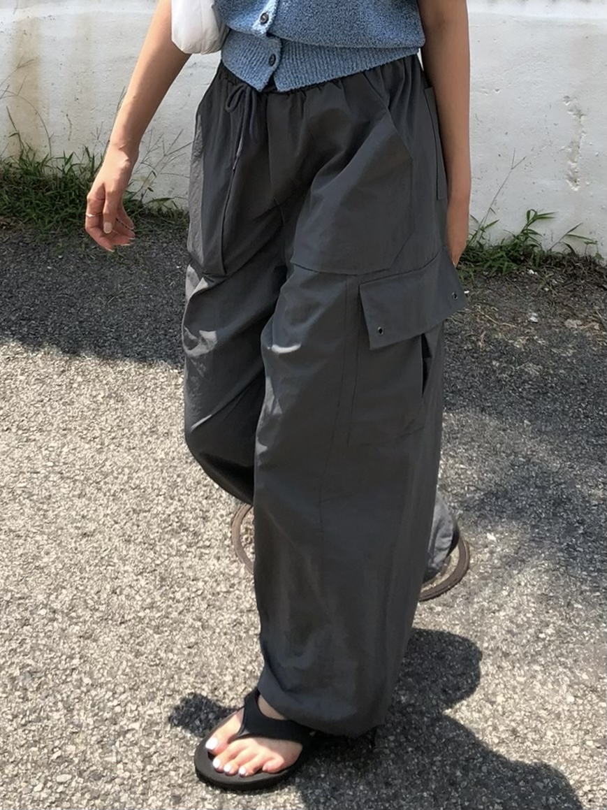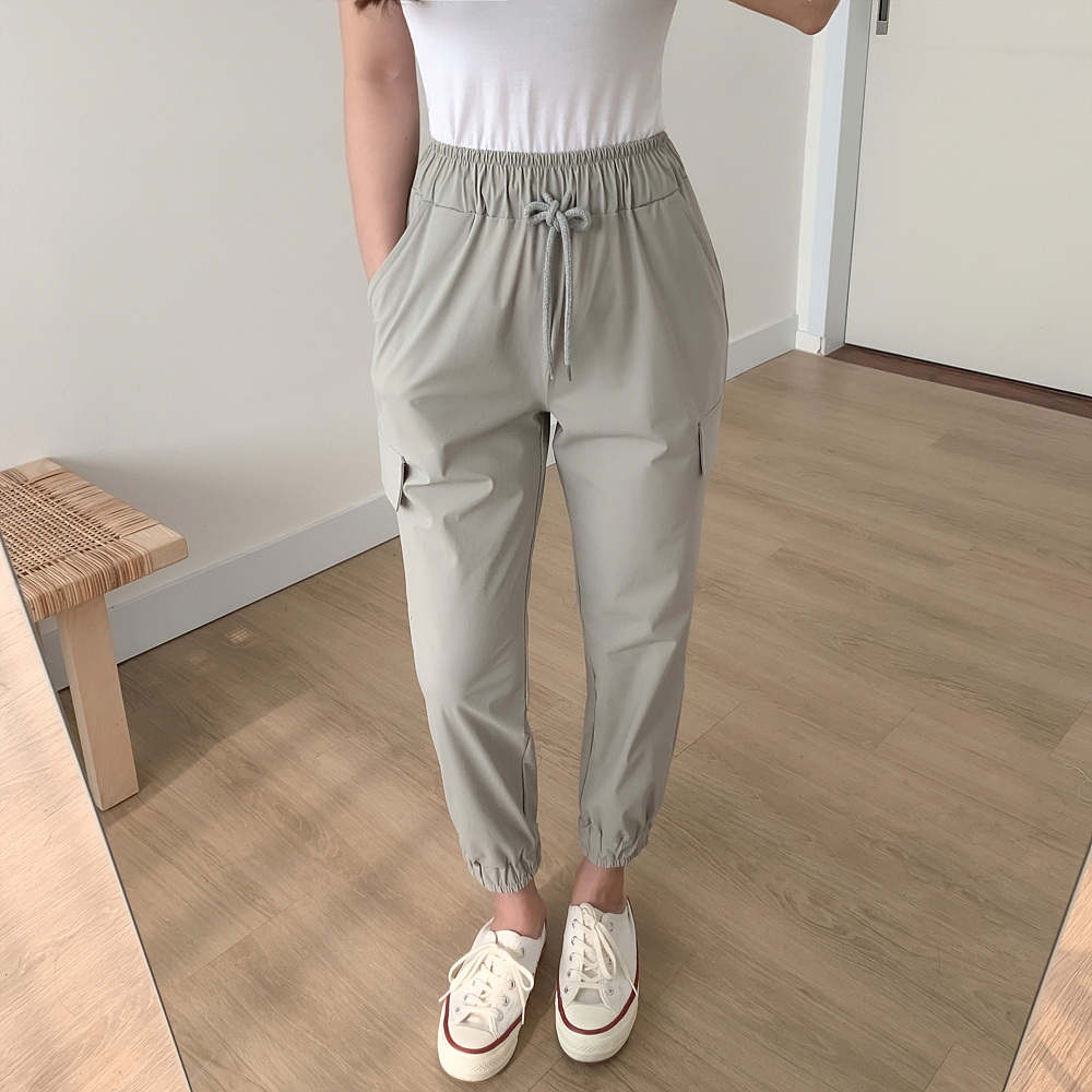 허리스트링과 양 사이즈 포켓 4개로 실용성 높게 착용 가능한 아이템이에용😆