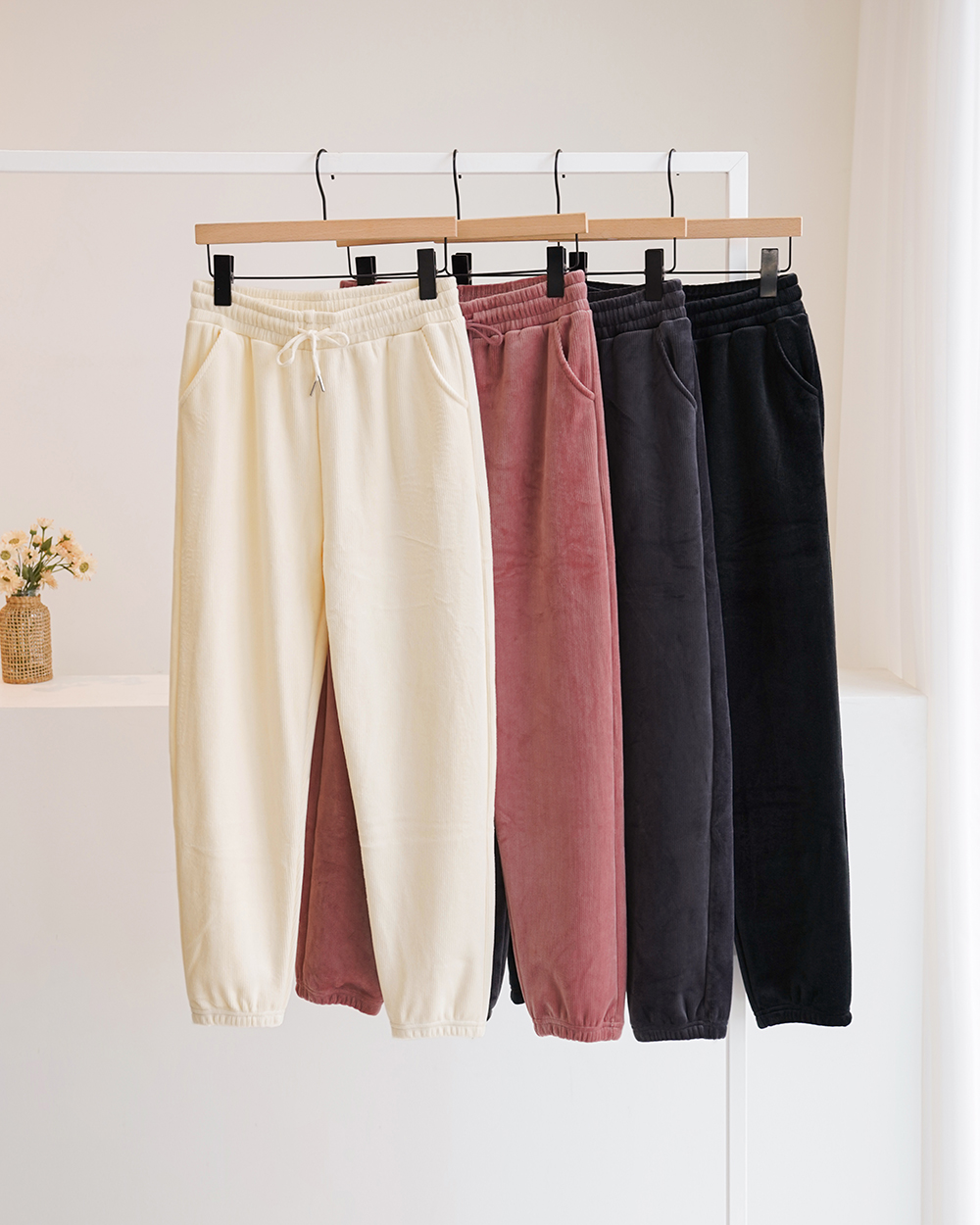 - 다양한 색감으로 포근하게 착용할 수 있는 모먼트 투웨이 기모 조거 팬츠 소개해드려요