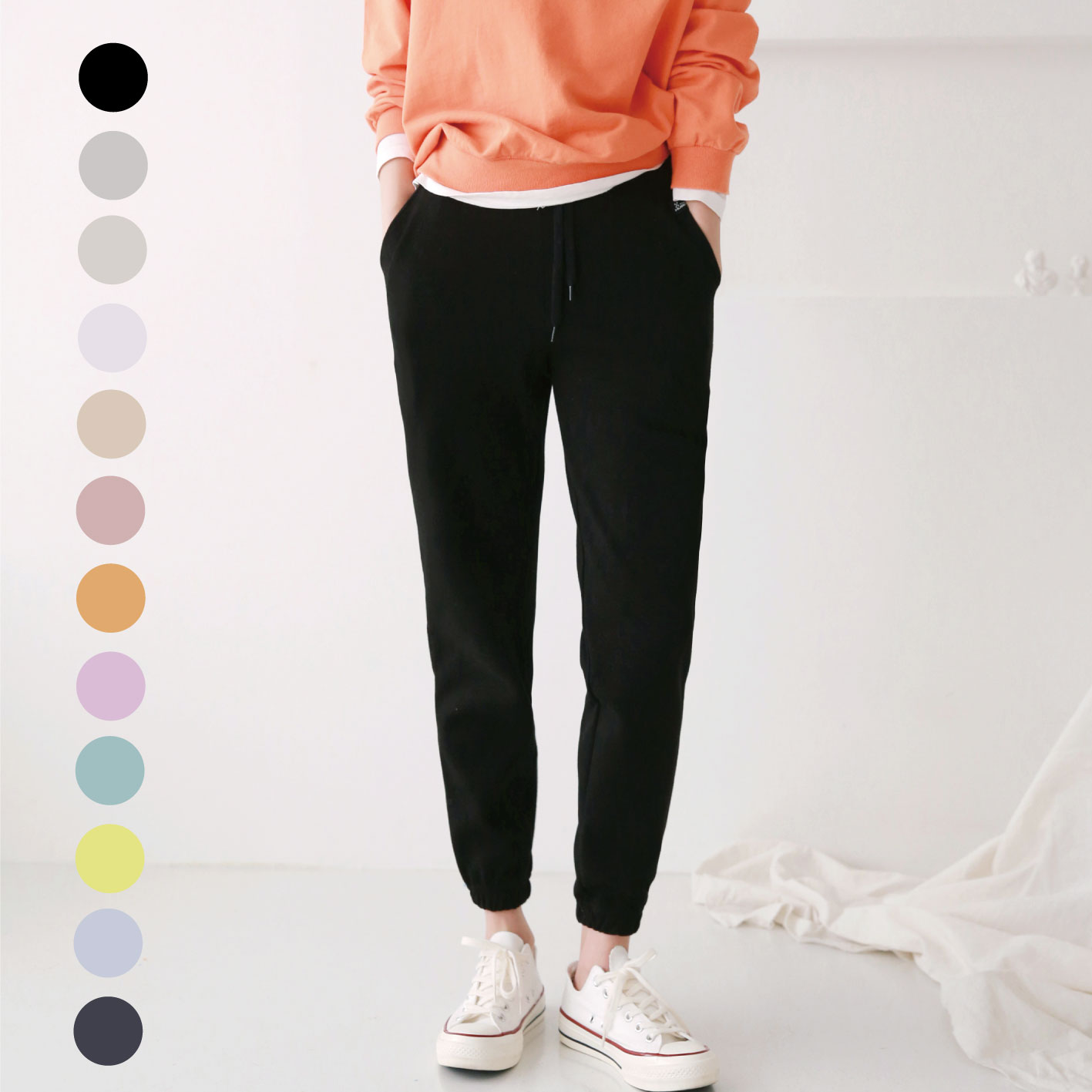 - 밑단 스트링조절이 가능해서 일자팬츠, 조거팬츠 투웨이 연출이 가능해요!