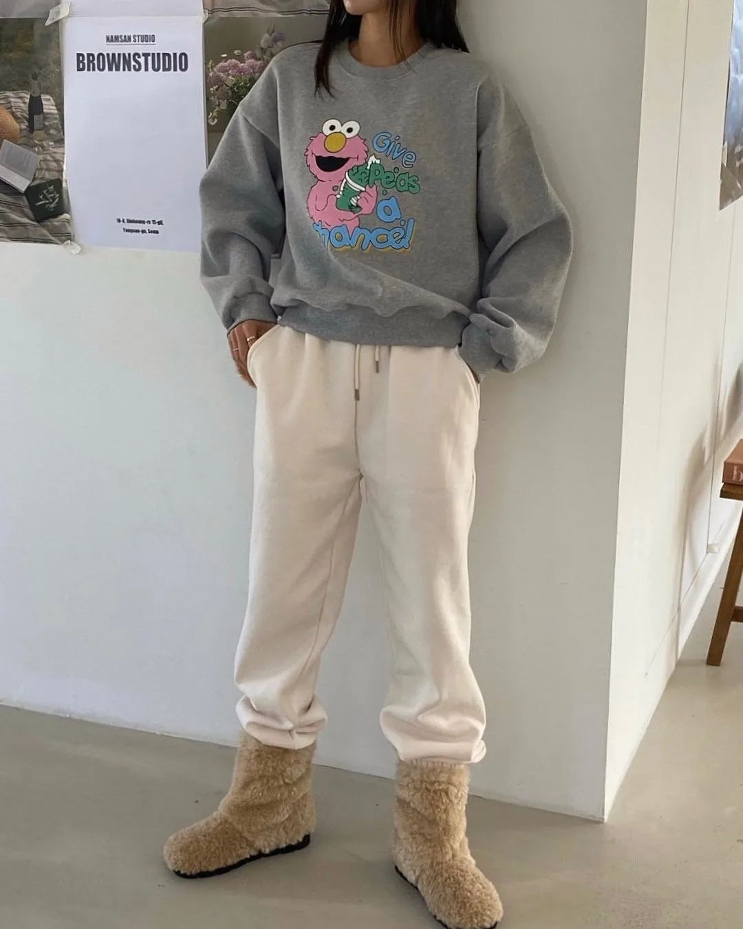 오아이어아이 oioi 오아이오아뉴진스 oioi뉴진스 조거팬츠 맨투맨 집순이옷 꾸안꾸 오트밀조거팬츠