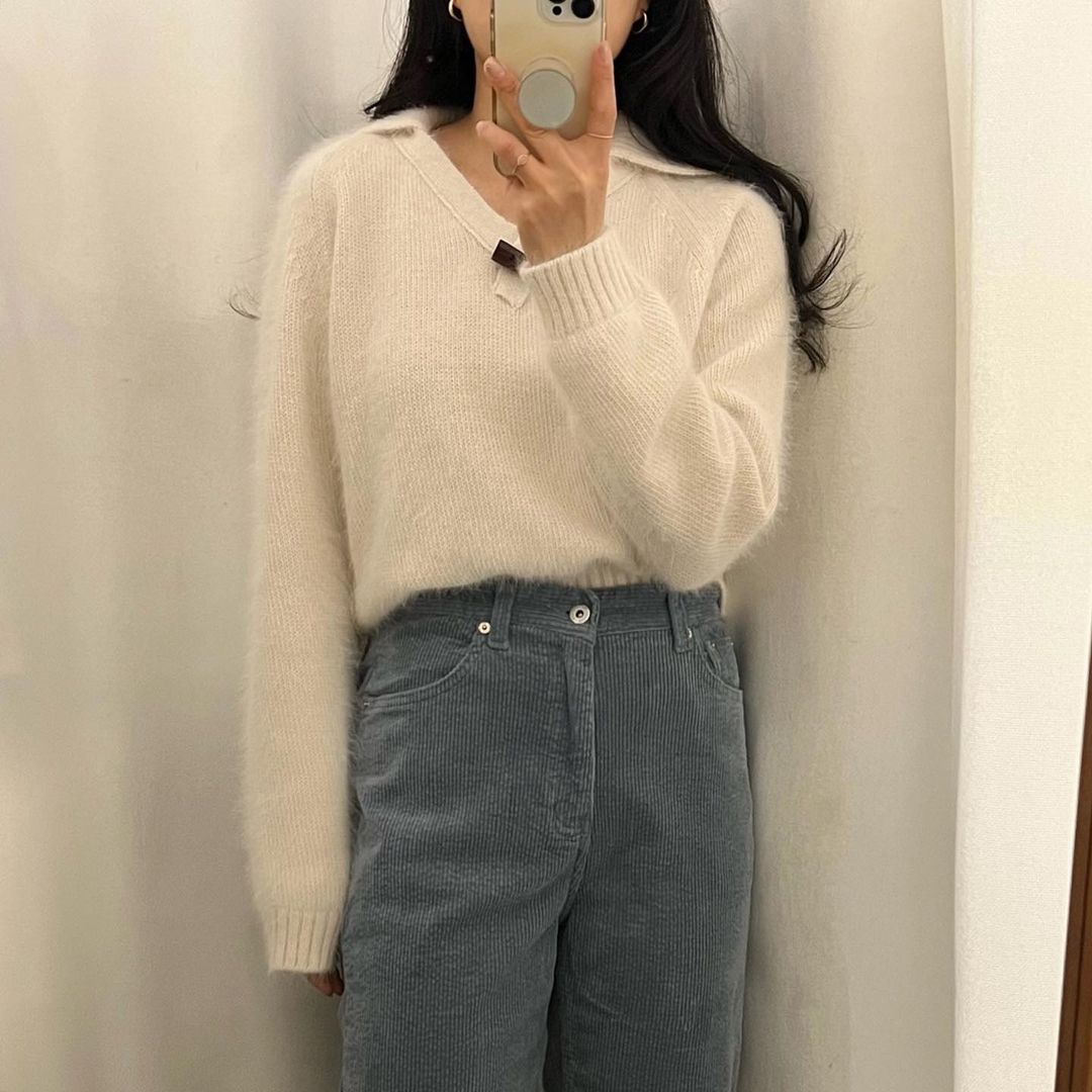 뽀글뽀글한 소재만으로 포인트가 되는 도톰한 소재의 부클 니트🫧
