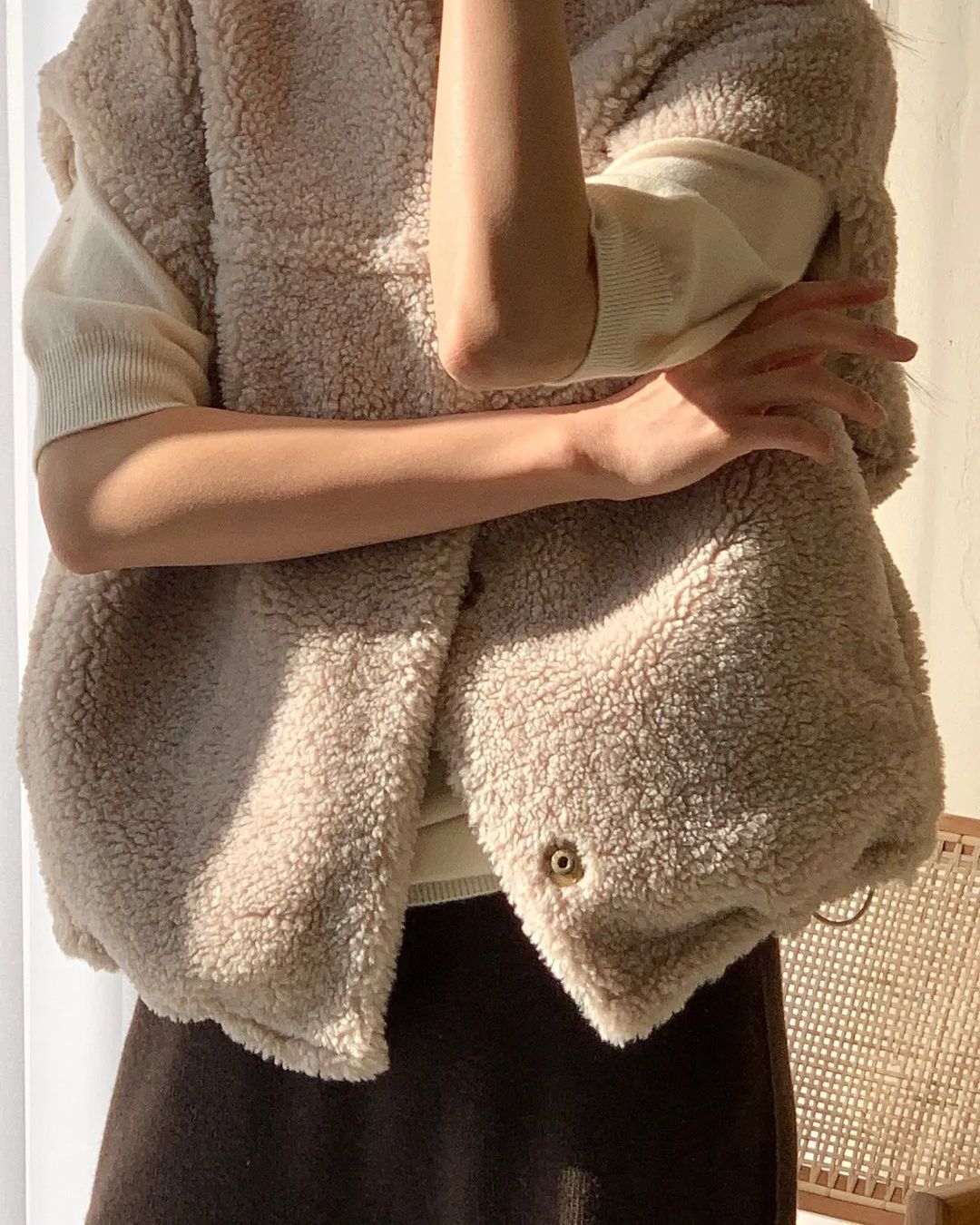 실내로만 이동할 때 너무 유용한 무스탕조끼