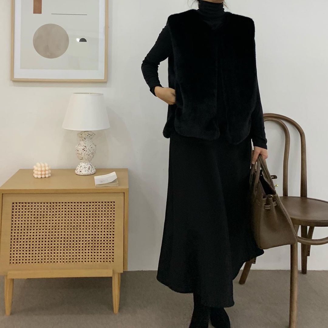 보온성좋은 무스탕조끼 밍크퍼조끼 퍼베스트 데일리룩