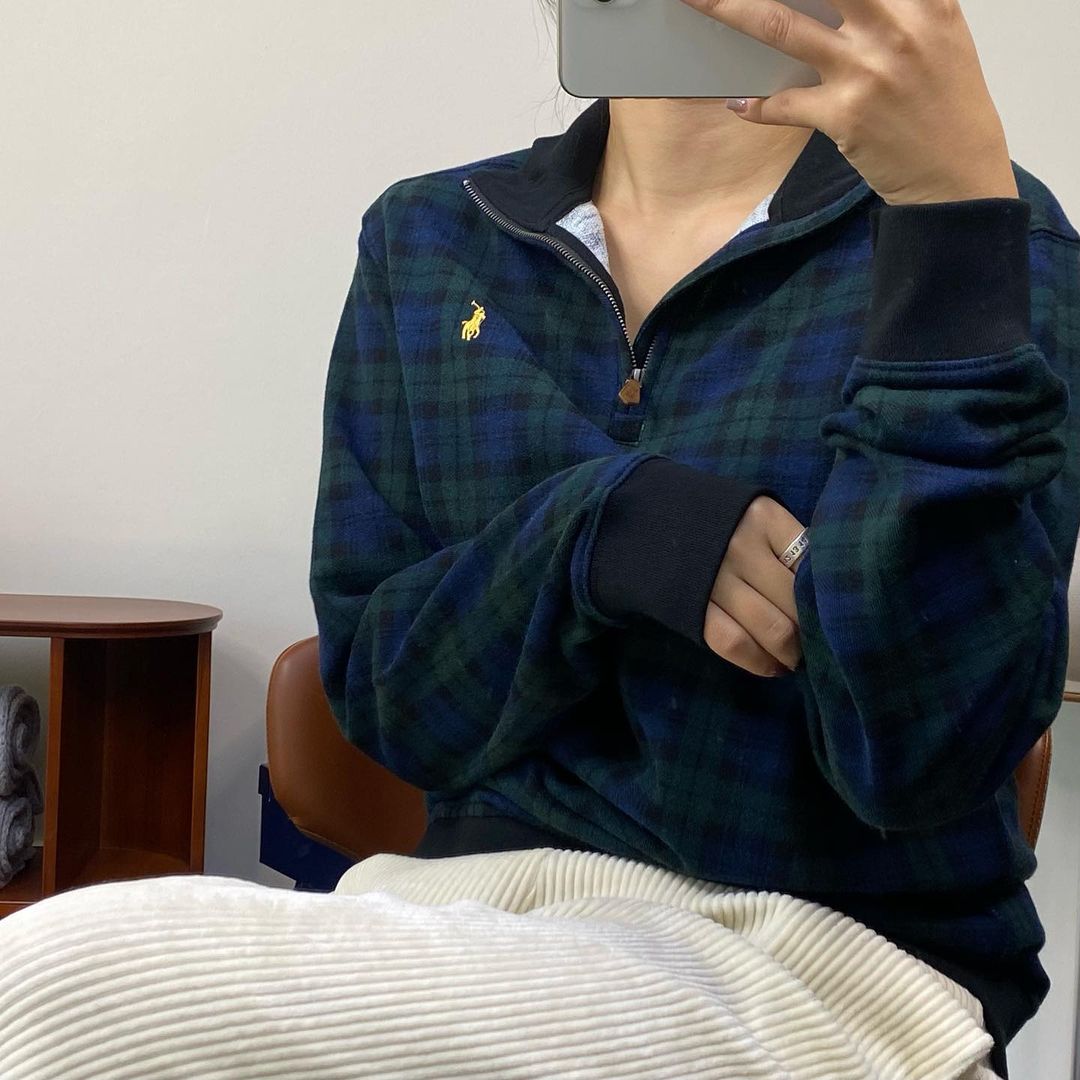 유니크한 체크패턴에 반집업 맨투맨 ❤️🔥 poloralphlauren