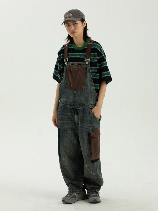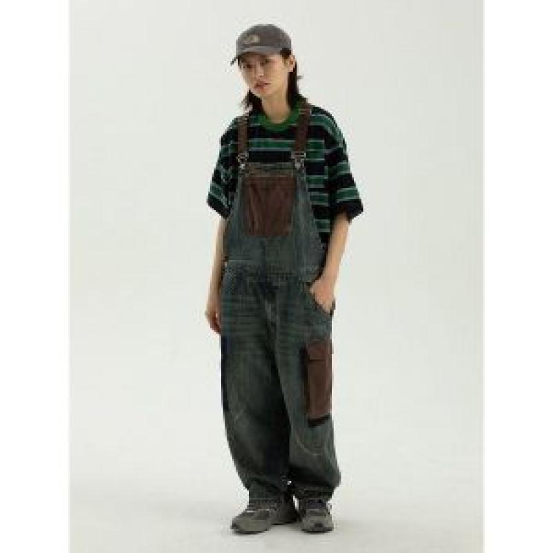 멜빵바지 복고풍 오버핏 점프슈트 청