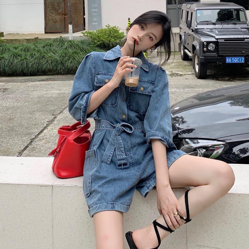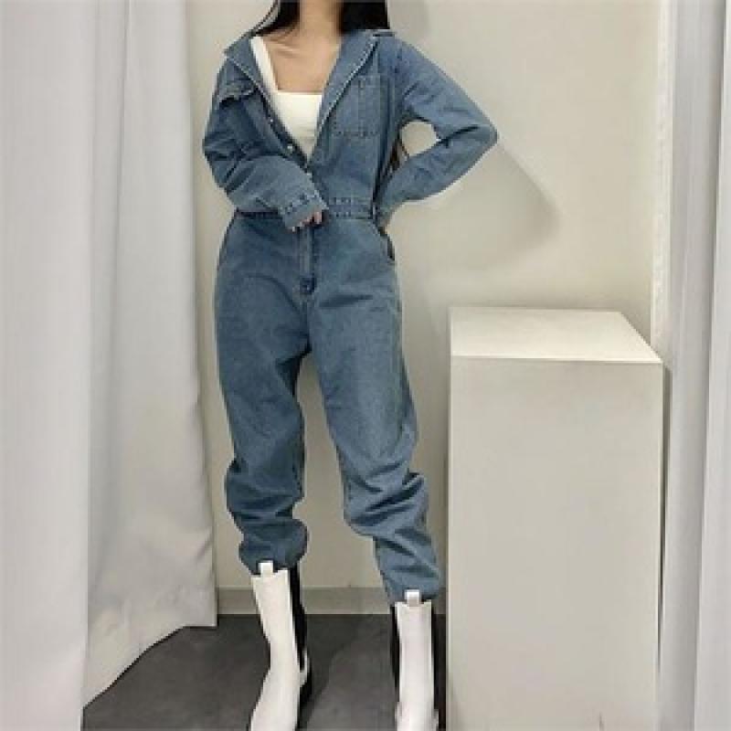 캐주얼 데님 올인원 여성 오버핏 점프 슈트