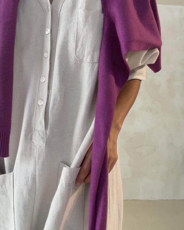 작업복 캠핑점프수트 간절기환절기템 어깨니트숄 퍼플 크림베이지