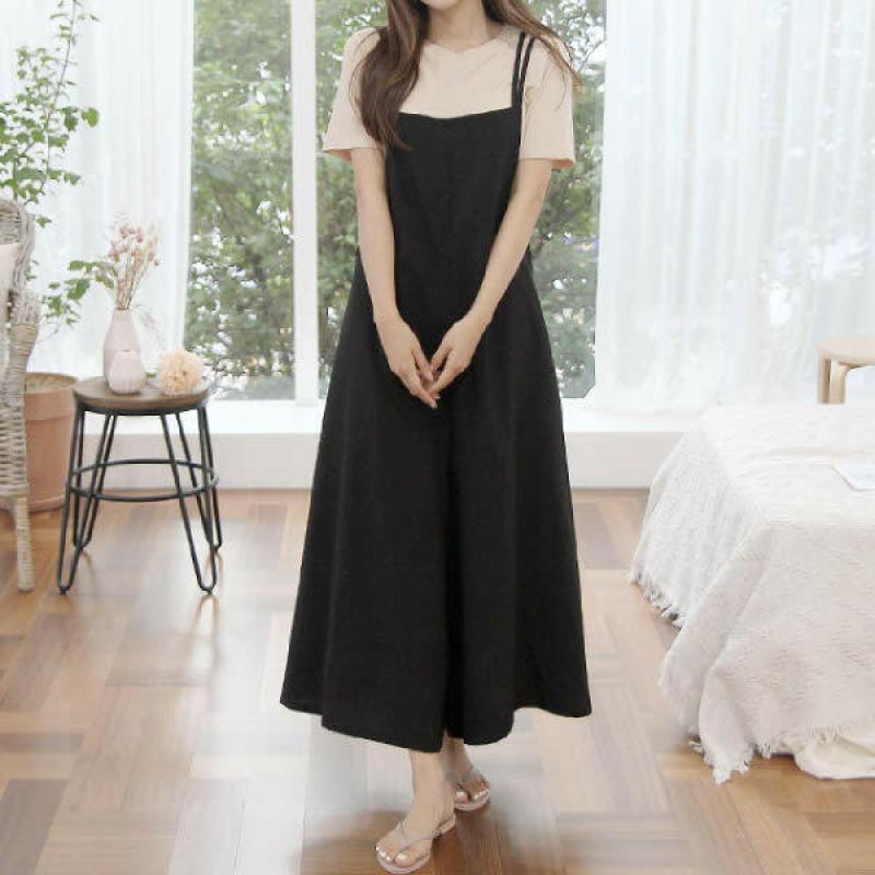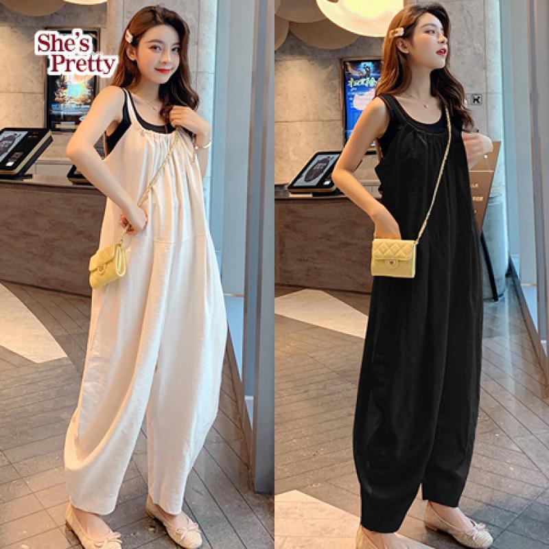 여자 스트랩 넓은 다리 오버핏 점프슈트