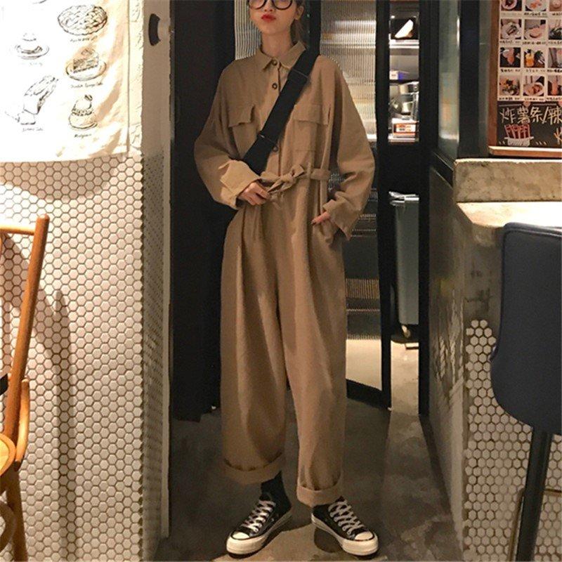 빈티지 오버핏 점프수트 여성 멜빵팬츠