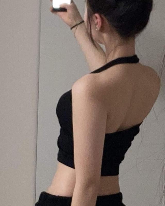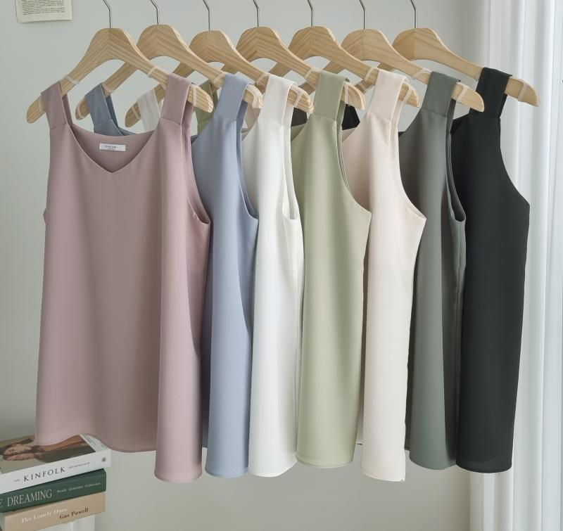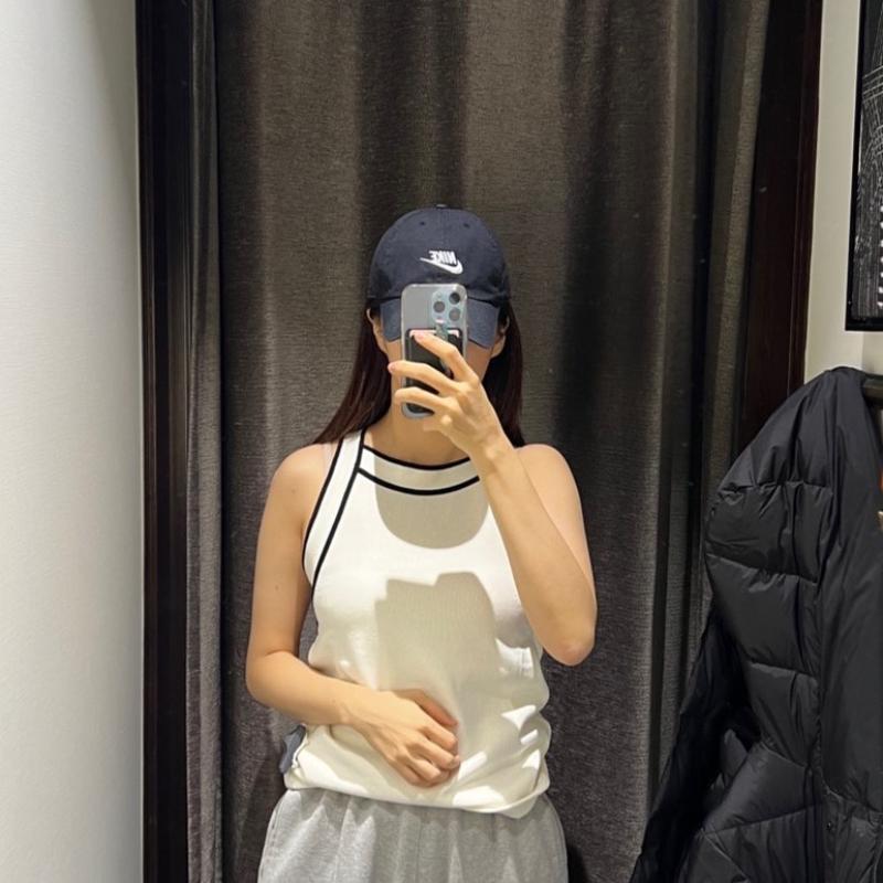 앞쪽은 홀터넥 디자인 , 뒷모습은 일자로 깔끔하게 떨어지는 디자인으로 제작되어 단독으로 코디해도 예쁜 나시에요😍