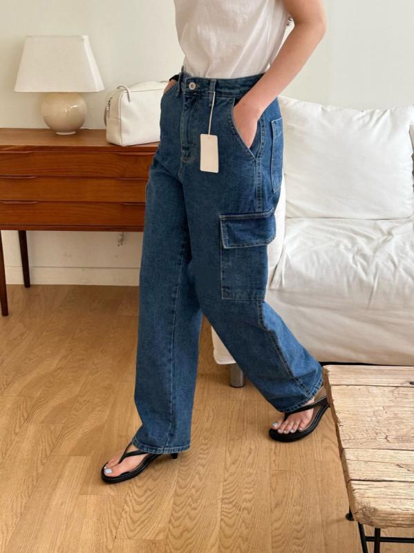 커먼유니크 유니 와이드 카고 데님 팬츠