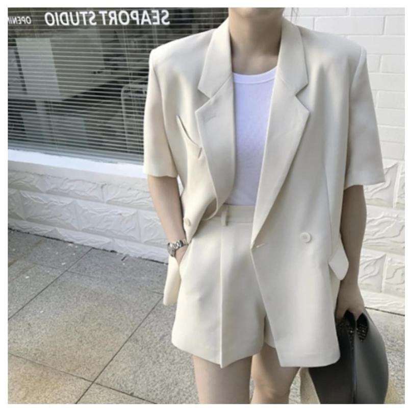 심플하면서도 유니크한 디자인의 자켓 반바지 세트입니다.