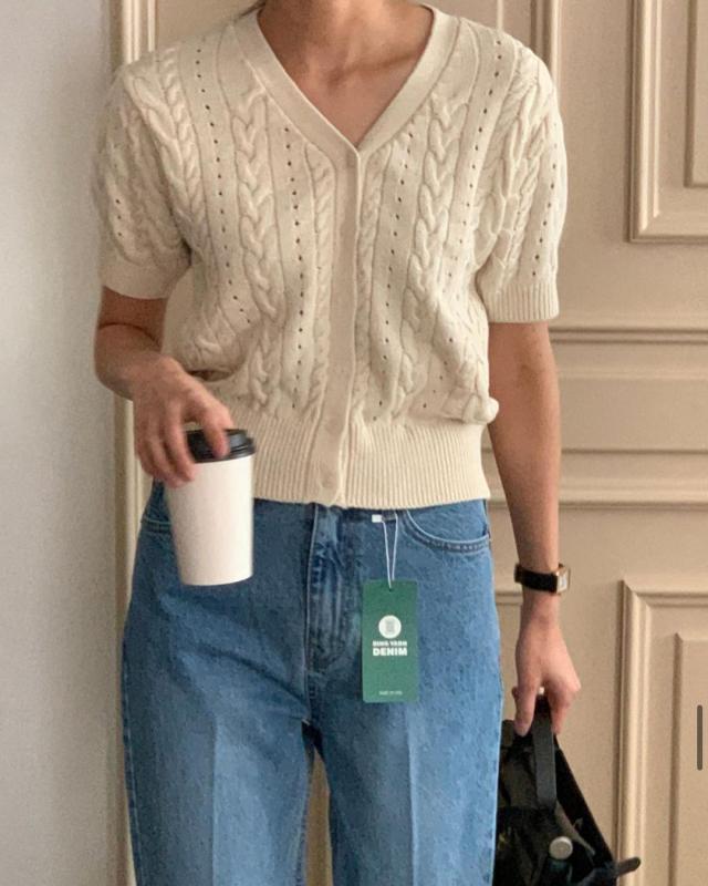 시슬리 핸드 크레프트 반팔 가디건 SAKCC5311