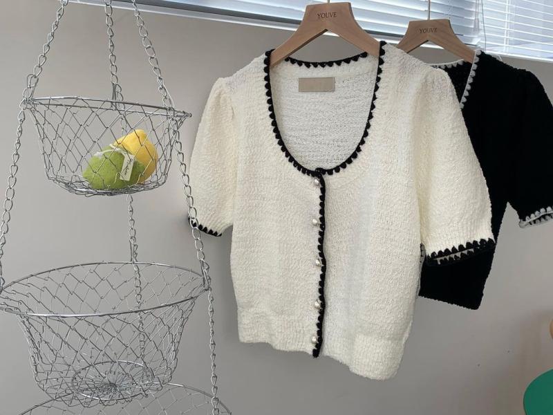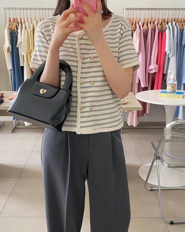 귀여운 거 또 발견🍦 반팔 니트로 입으셔도 되고 풀어서 가디건으로도 활용 가능해요🤍🤍 그레이/블랙🫶🏻