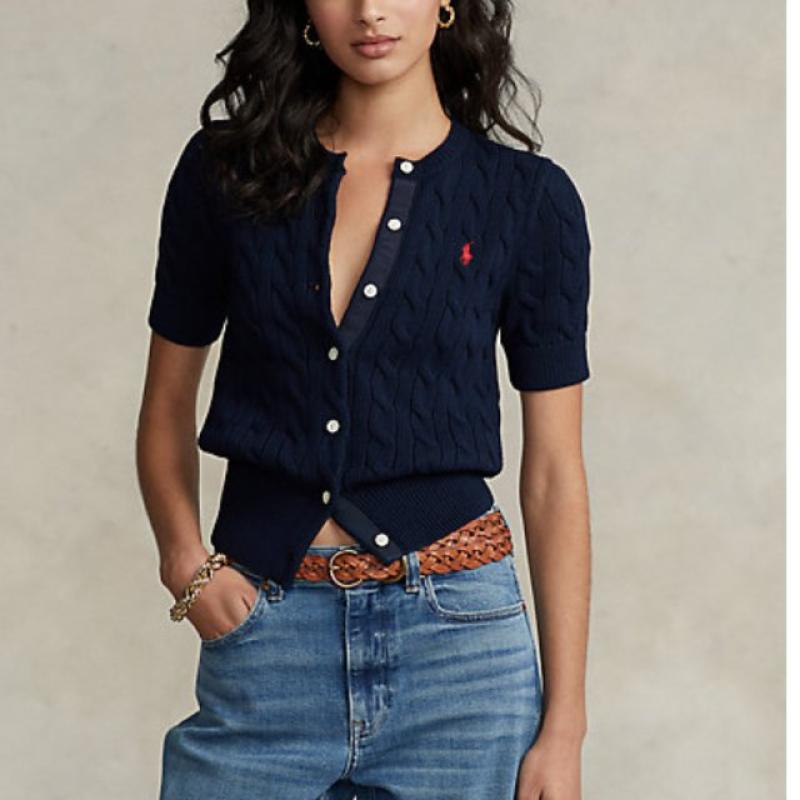 폴로 랄프로렌 여성 케이블 니트 반팔 가디건