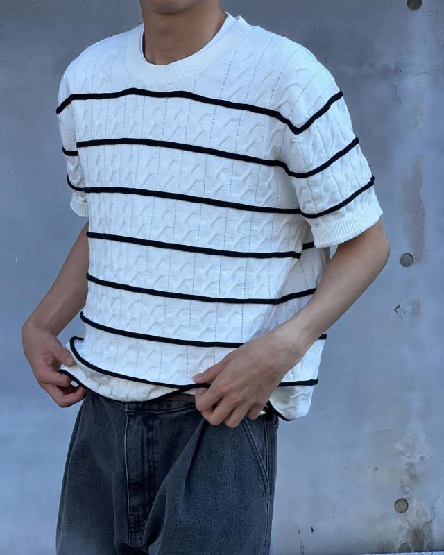 여름니트 남자단가라니트 단가라니트 카고팬츠 남자카고팬츠 와이드팬츠 남자여름코디 에더트