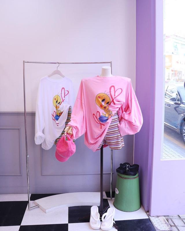 부드럽고 박시한 얇은 긴팔 티셔츠에용:)