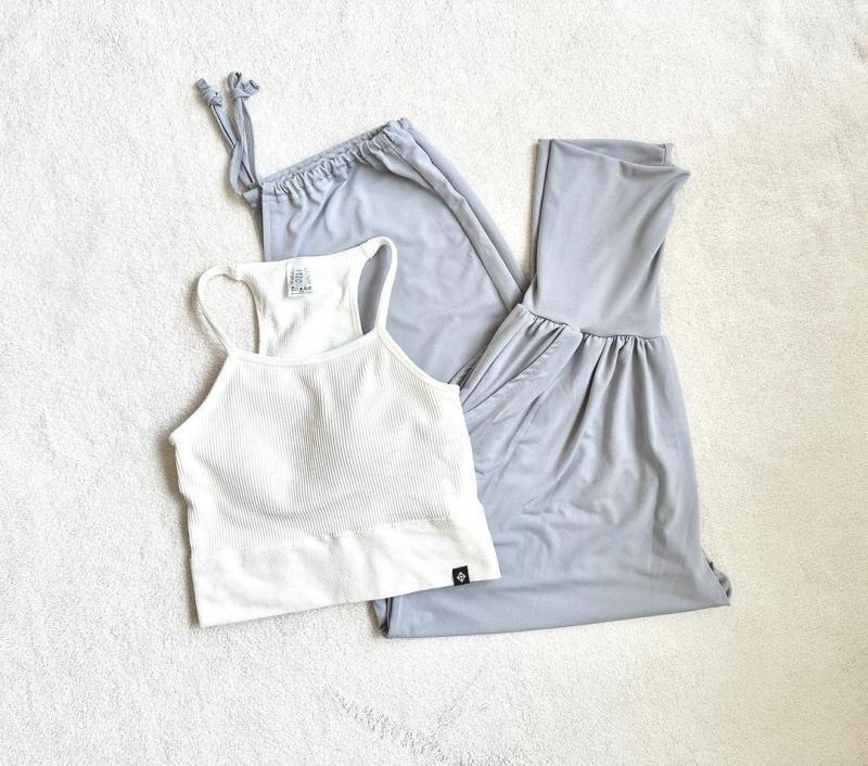 약간 와이드한 팬츠라 엄청 깔끔한 잇존 크롭탑이랑 찰떡! 🧡💛화이트도 그레이랑도 잘 어울리네요. 그나저나 살이 쪄서 탑이 꽉끼는건... 이러니 역자세가 안된다며, 😂🤣반성하는 한주.🥲
