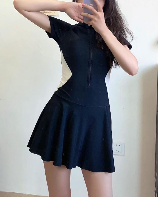 ∨ 레귤러 핏과 스포티한 원피스 치마래쉬가드