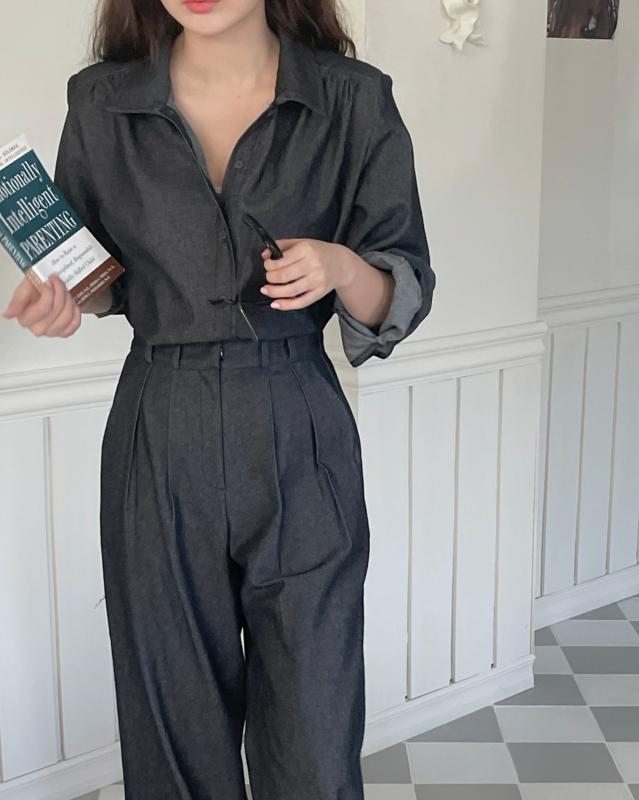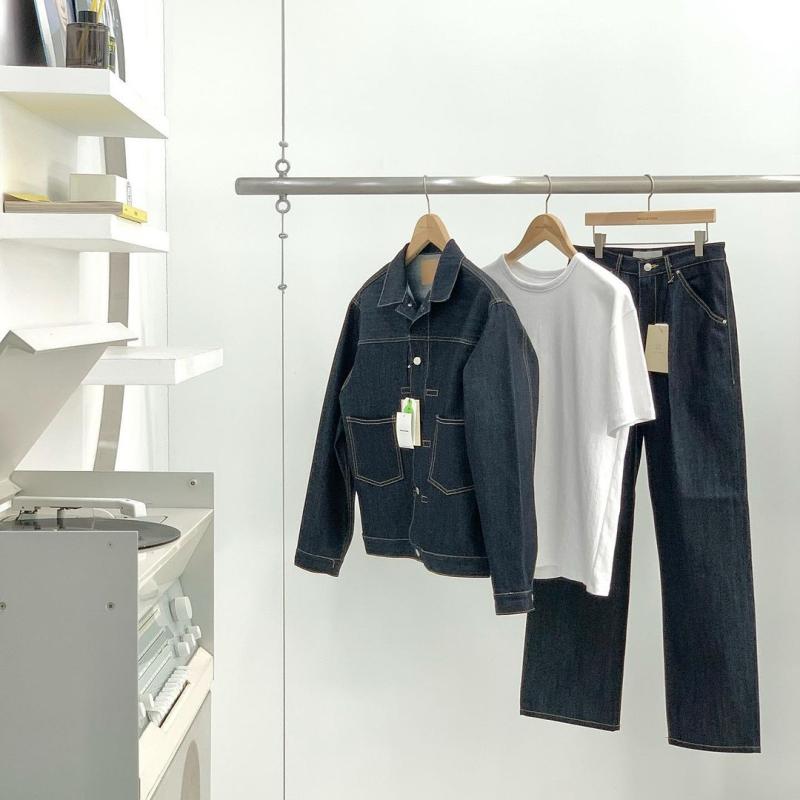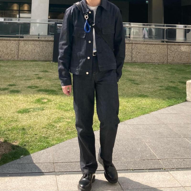고급지고 은은한 광택감이 매력적인 생지 데님 자켓과 와이드 팬츠