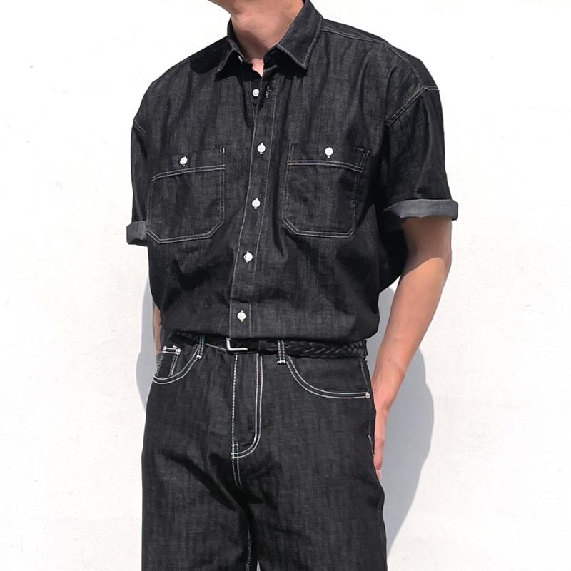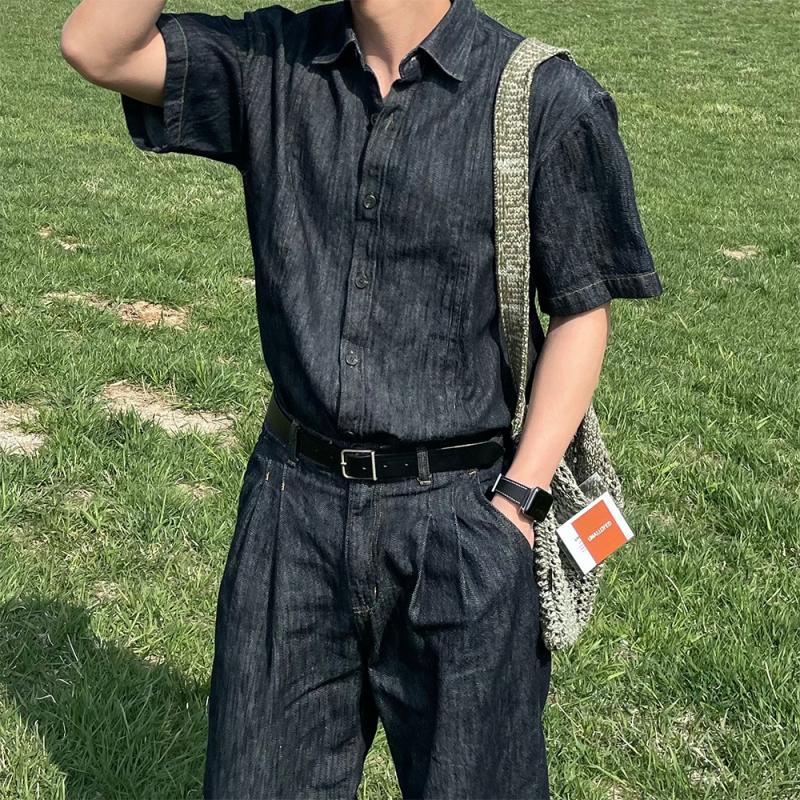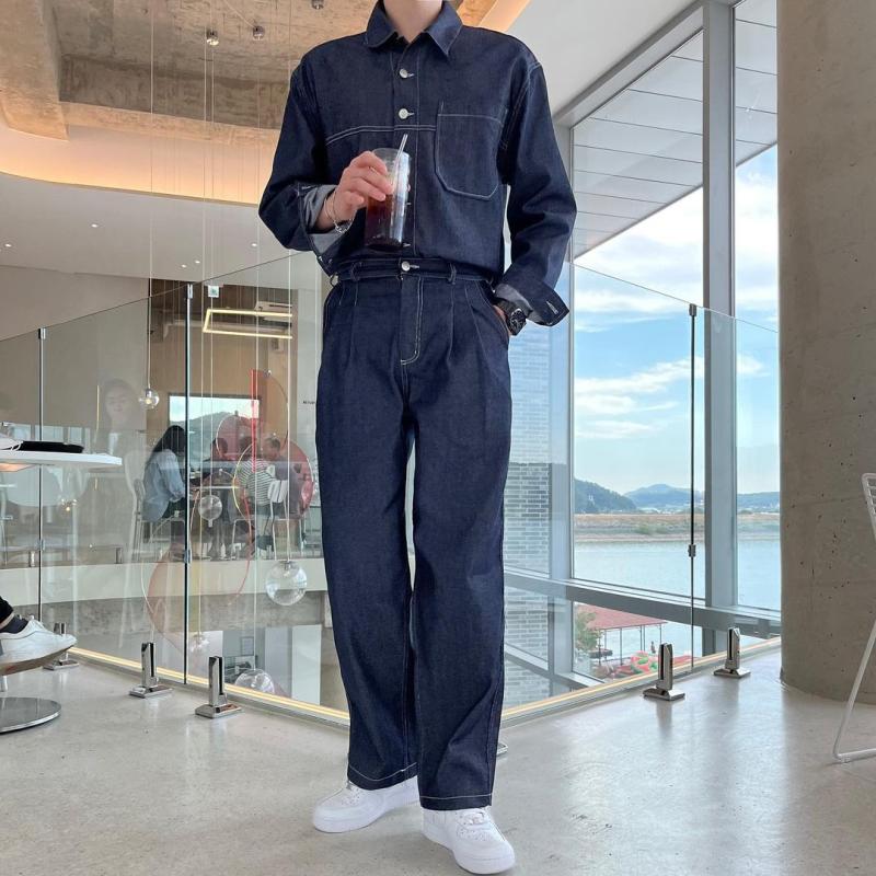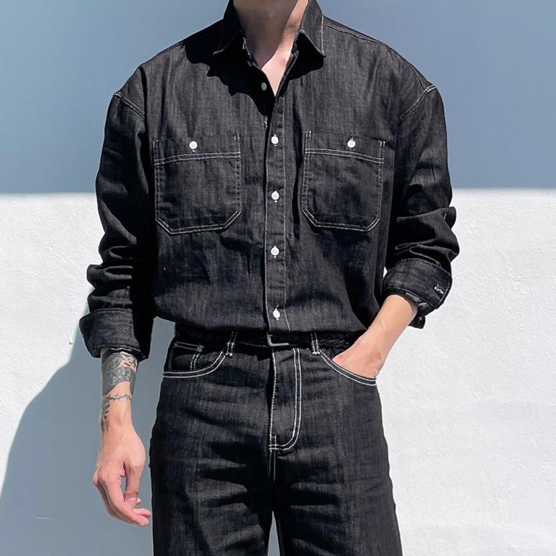 남자 데님셋업 흑청 생지 데님 셔츠 셋업