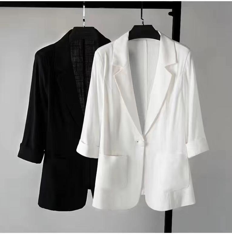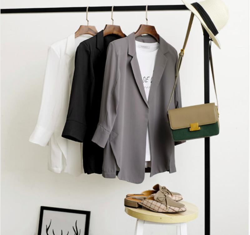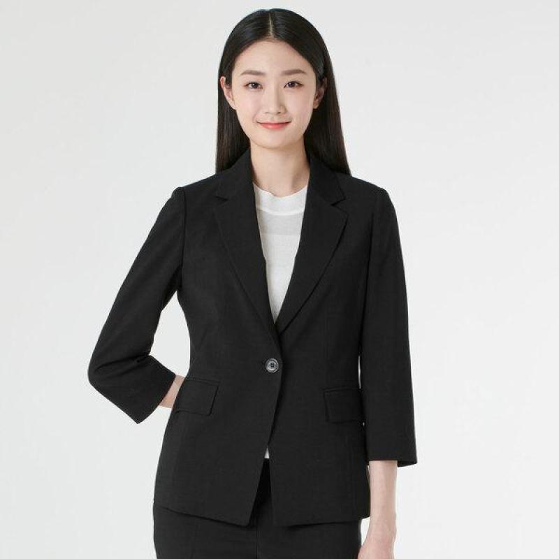 폴리스판 100%로 슬림한 핏이지만 신축성이 좋아서 활동성이 좋고 시원한 소재에 라인이 예쁜 자켓입니다