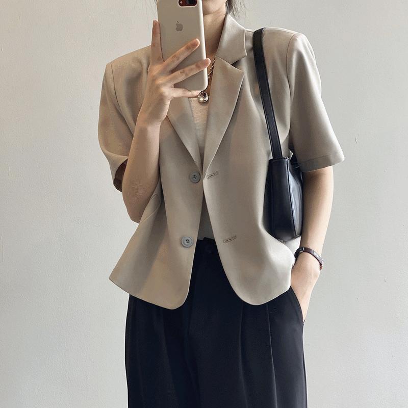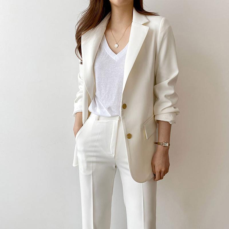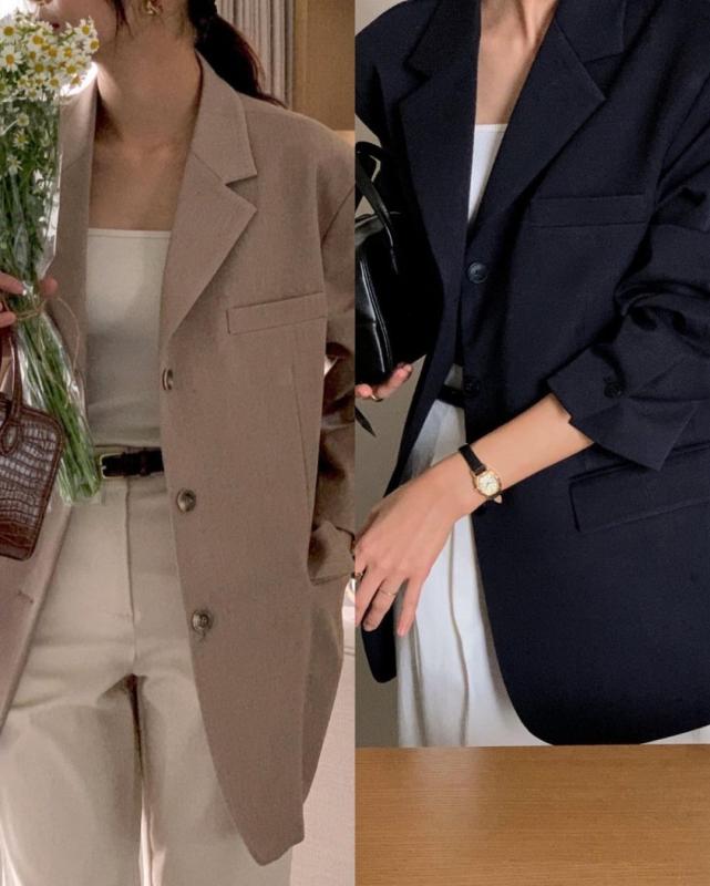 싱글 버튼에 테일러드 카라로 시크하고 모던한 무드를 느끼게 해줍니다