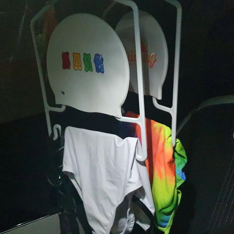 다행히 샤워실에 분실물 여분이 있어서 세상 쨍한 주황수모를 빌렸는데🤭 반횐님이 내가 깔맞춤한줄아시고 잘어울린다해주심🤣🤣