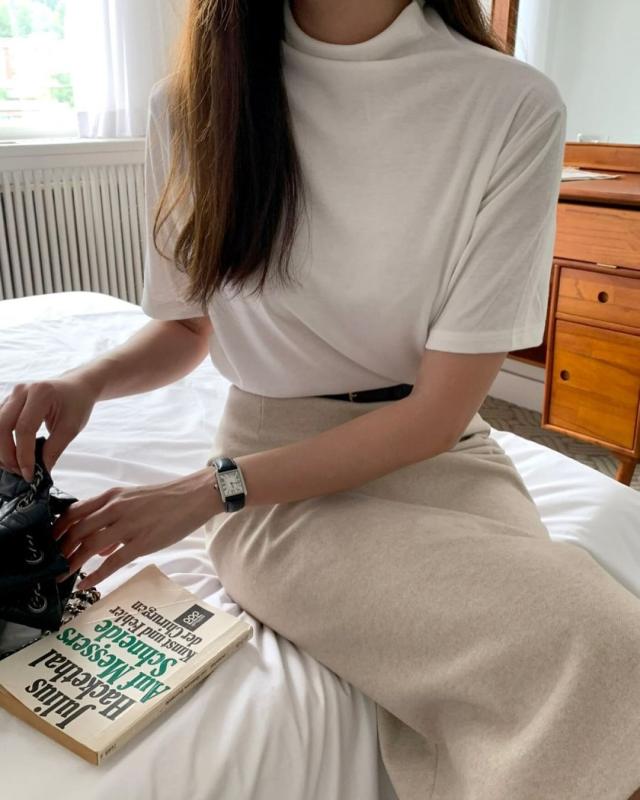 🥰 데일리하게 기본으로 입으실수 있는 베이지 라운드 티셔츠에요^^