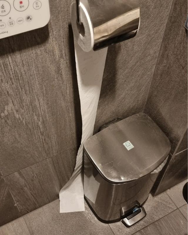 여자손님들이 자꾸 두루마리 휴지를 저렇게 해놓으시더라구요.