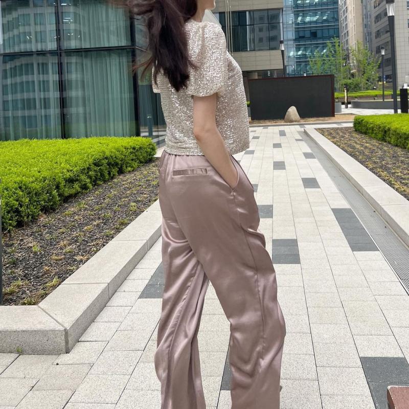 뒷밴딩이 있어서 편안하면서도 체형보정, 실키한 고급스러움, 구김안가는 소재라서 너무 추천드리는 팬츠 업데이트했어용! 한여름에도 시원하게 입을수 있고 봄가을에도 가디건, 자켓이랑 잘 어울려요🤍