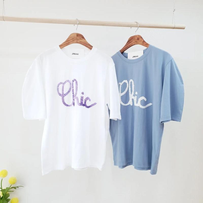 태그 레터링 스팽글 티셔츠