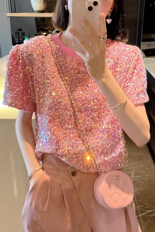 [발랄언니]블링블링 핑크 스팽글 반팔 티셔츠