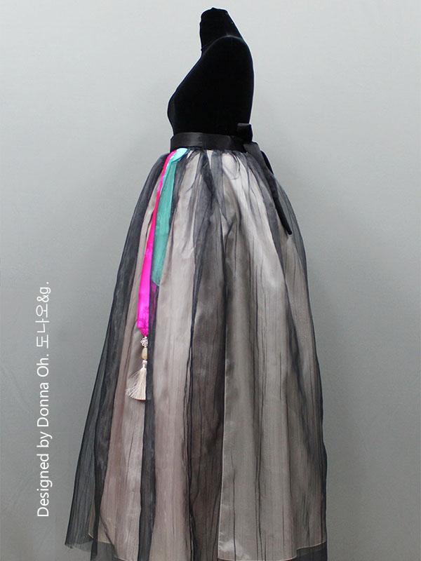 한국무용치마 라이크랩 언발란스 그라데이션 풀치마