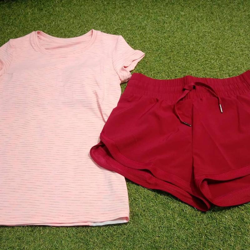 얇은 원단으로 한여름 땀이 많이 나는 운동에도 적합합니다. * top : 이너브라가 있는 반팔 운동복으로 신축성이 뛰어나 착용시 편안합니다. 옆라인에 매쉬 소재를 믹스하여 땀과 열기 배출이 용이합니다.
