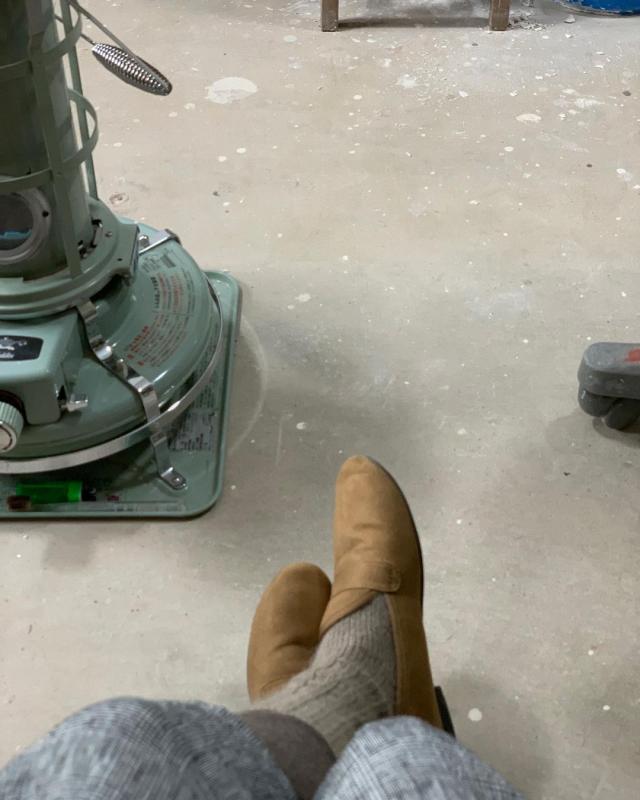 노산의 작업장 입구에 자리를 잡고 앉아 세상 한가하게 커피를 마시고 있다. 두 작가는? 작업하고 있지~
