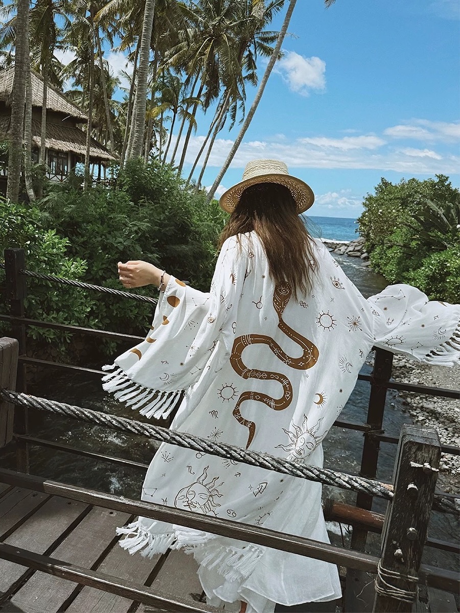 트렌디한 프린트가 더해진 로브는 라운딩 갈 때나 여행 갈 때 입으면 존재감 확실할 것 같아요!
