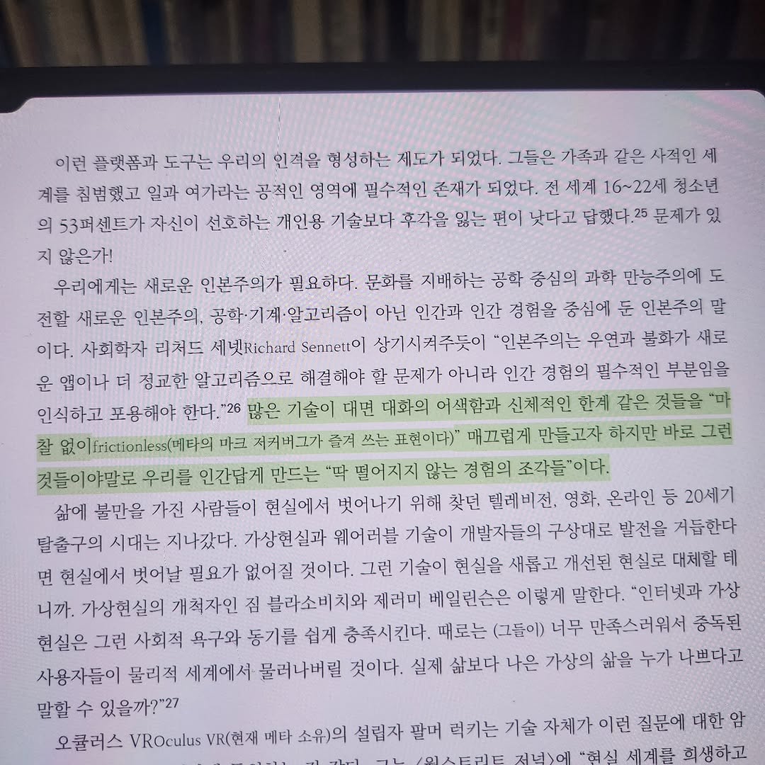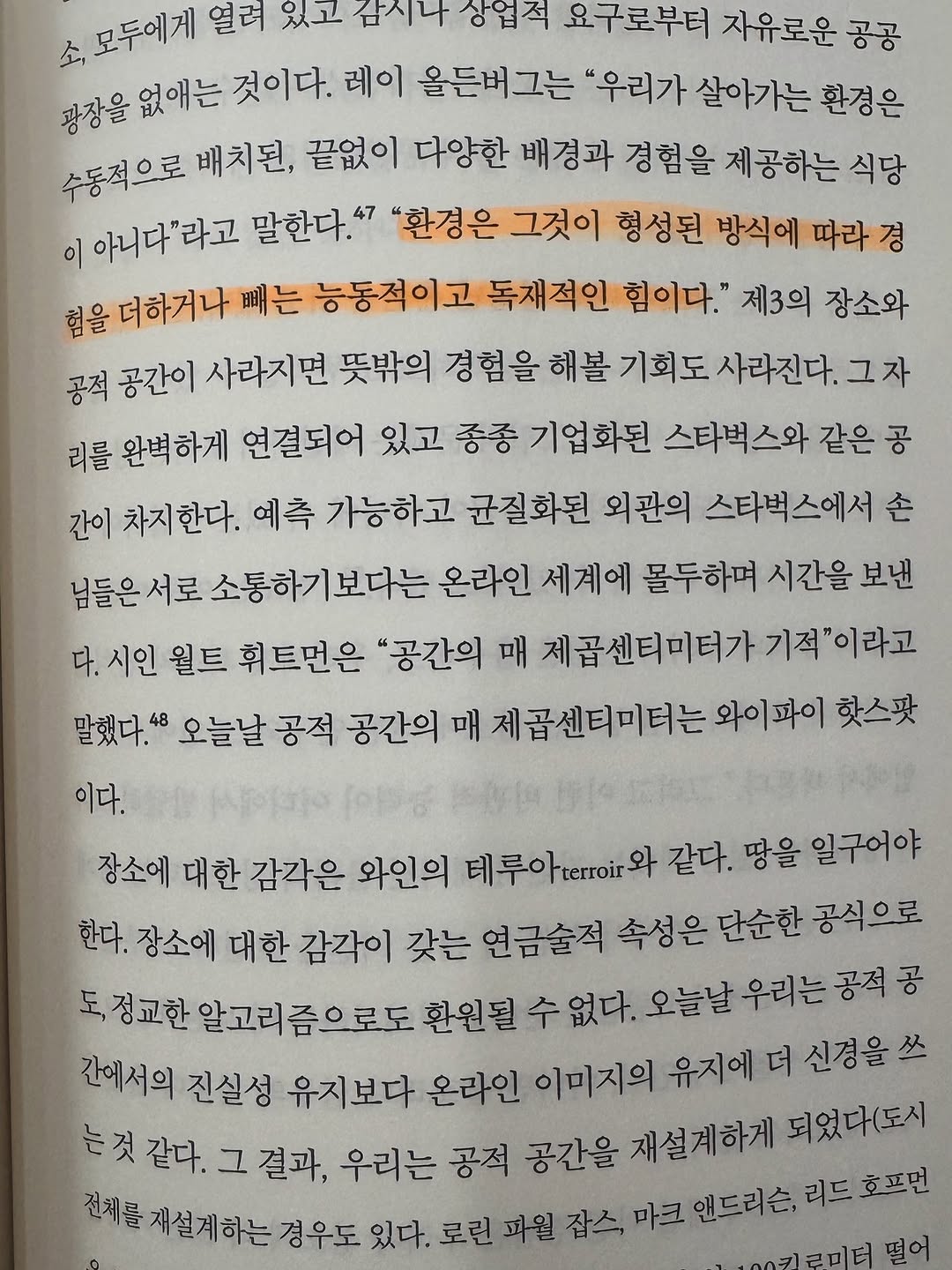 여행도 마찬가지예요. 알고리즘이 추천하는 맛집만 찾아다니고, '사진 찍기 좋은 곳'만 따라다니다가 남들 다 찍는 인증샷만 수십 장 찍고 오는 경우가 부지기수죠. 심지어 구글 같은 서비스로 유럽 박물관 작품을 고화질로 감상하는 시대에, 우리는 그걸 '봤다'고 말할 수 있을까요? 저자는 우리가 '경험 표절'을 하고 있다고 말하는 듯했어요. 남의 경험을 소비하는 것을 넘어, 기록하기 위해 경험하는 세상이 되어버렸다는 게 너무 현실적으로 다가왔어요.